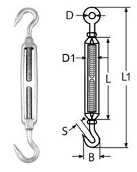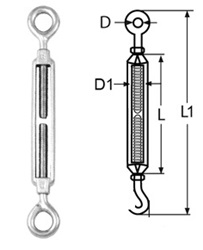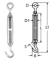 Tensor abierto con gancho y ojo de acero inoxidable AISI-316 pulido.