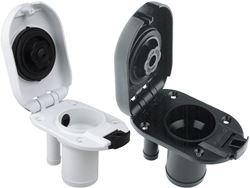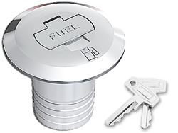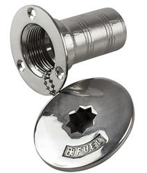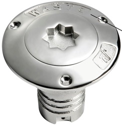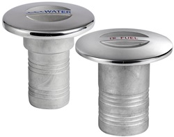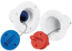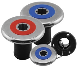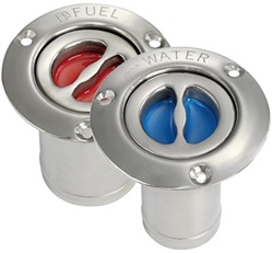 Las bocas de llenado con tapa Nuova Rade Inox son adecuadas para combustible o agua. El uso se indica fácilmente por el color de la tapa: azul para agua dulce y rojo para combustible