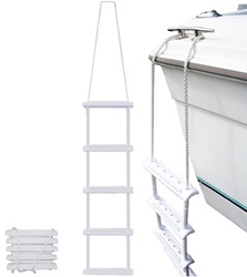 La escalera se despliega debajo del agua, con un contrapeso en los escalones
