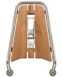 Plataforma de proa fabricada en madera de teca y acero inoxidable AISI 316 para resistir la corrosión.