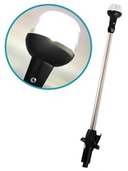 Suministrada con cable y un soporte de montaje de acero inoxidable. La luz se puede quitar de este soporte.