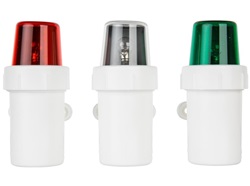 Luz de navegación portátil a pilas. Cuerpo en ABS, lente en policarbonato, base en ABS.