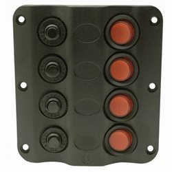 Estanqueidad IP65 asegurada por detras mediante una placa con capuchones de caucho para cada interruptor.