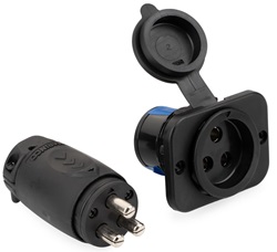 Esta conexión de enchufe de alta potencia de 3 polos de MARINCO, que consta de una clavija y una toma de corriente incorporada, puede utilizarse universalmente y es apta para su uso en sistemas eléctricos de vehículos de 12, 24, 36 y 48 V. No sólo convence por sus dimensiones compactas y su gran capacidad de carga de hasta 70 A para 12 y 24 V y 60 A para 36 y 48 V, sino también por otras propiedades como su resistencia a salpicaduras y a la corrosión. Bornes de conexión para secciones de cable de hasta 16 mm² (AWG 6). El volumen de entrega incluye: clavija y caja de enchufe empotrada con panel de montaje y tapa de cierre elástica, 6 terminales de cable para conductores de cobre de Ø máx. 5,8 mm, 2 tornillos de cabeza cilíndrica 2,4x15 y llave Allen de 2,4 mm (3/32") para los terminales de tornillo.