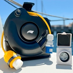 Incluye enchufe y capuchon 16A para la embarcación, base de 16A para le ambarcación, enchufe macho 16A para pantalán, cable de 15 metros de longtiud y carrete para guardarlo.