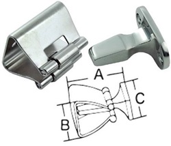 Modelo 70mm. Para puertas interiores o exteriores. Longitud (A): 70mm. Base 1 (B): 41x32mm. Base 2 (C): 43x23 mm