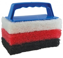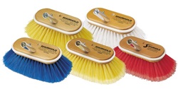 Modelo 965 Combo, con cerdas de poliestireno rojo con las puntas en fibra abierta. Apto para usar en gelcoat, superficies pintadas, fibra de vidrio… (sin frotar fuerte) y para usar en cubierta y superficies antideslizantes (frotando fuerte). Cuanto más fuerza ejerce, trabaja más duro