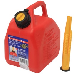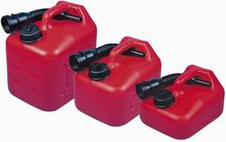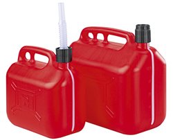Depósitos de transporte de combustible «Jerrycan» de plástico con tubo para facilitar el transvase.