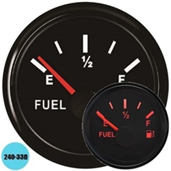 Requiere aforador estándar europeo (VDO). desde 0 ohmios vacío hasta 190 ohmios lleno (10-180, 3-180, 0-190)
