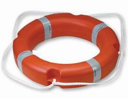 Aro salvavidas conforme a la normativa SOLAS 74/96, equipado con 4 bandas reflectantes