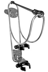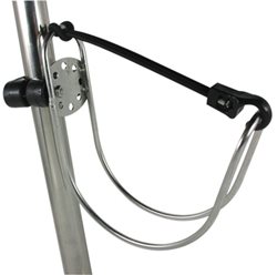 Goma elástica (sandow) y mosquetón plástico para evitar que el aro se salga del soporte durante la navegación.