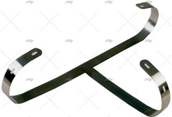 Goma elástica (sandow) y mosquetón plástico para evitar que la herradura salga del soporte durante la navegación.