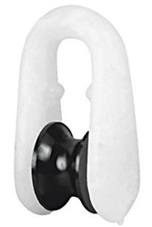 Fabricada en poliamida, cuerpo en color blanco y roldana negra.