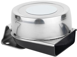 Unidad sonora cuidadosamente protegida y construida con material anticorrosivo. Baño de cromo resistente a la salinidad. Provista de soporte de fijación.