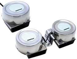 Bocina empotrada con excepcional potencia sonora. Una grande innovación es el compresor integrado a la bocina, que permite la inmediata emisión del sonido, apretando el pulsador. Por eso no es necesario ningún cableado del tubo del aire.