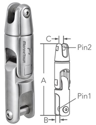 Modelo 12-14mm. Para cadena de 12mm. Longitud (A): 150m. Anchura Ancla (B): 26mm. Anchura Cadena (C): 16,5mm. Diámetro Pin: 16mm. Diámetro Pin2: 12mm. SWL: 1.700Kg