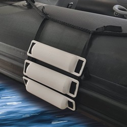 También es ideal para proteger el casco o los tubos de un RIB cuando se remolca: simplemente inserte las defensas de media luna entre el casco del barco y las correas que aseguran el barco en el remolque.