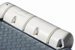 Su diseño lo convierte en una defensa articulada que se adpata a cualquier lado de la embarcación o del pantalán. Posibilidad de usarla como defensa plana.