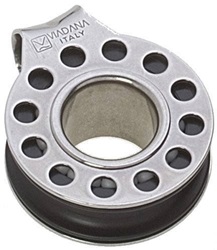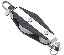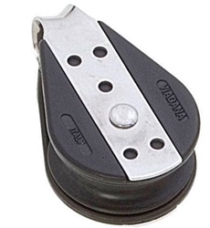 Modelo 8mm. Para cabos de 8mm. Diámetro de roldana: 28 mm. Carga de Trabajo: 150Kg. Carga de rotura: 750Kg