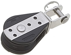 Modelo 6mm. Para cabos de 6mm. Diámetro de roldana: 22 mm. Carga de Trabajo: 100Kg. Carga de rotura: 700Kg
