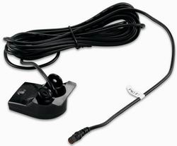 Este transductor de montaje en espejo de popa de plástico se puede utilizar para sustituir los transductores de frecuencia dual incluidos con muchas unidades Garmin.