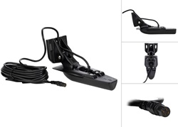 El transductor de 8 patillas incluye una sonda tradicional CHIRP con banda de frecuencia media (85-165 kHz) y tiene una potencia de 600 W. Se puede instalar en el espejo de popa.