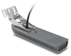 El transductor de 8 patillas con 4 depósitos de plástico incluye una sonda tradicional CHIRP con banda de frecuencia media (85-165 kHz) y tiene una potencia de 600 W. Se puede utilizar en conjunto con un transductor GT30-TM y un cable adaptador para mantener las lecturas de profundidad a altas velocidades y las capacidades de exploración a velocidades de curricán.