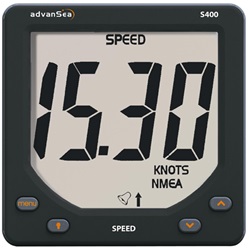 Velocidad de superficie (0-60kn). Velocidad fondo (conectado via NMEA0183). Contador total y parcial. Tiempo transcurrido y cuenta atrás para regata. Temperatura del agua. Indicación de la tendencia de la velocidad mediante icono. Alarma de velocidad sobre superficie alta y baja. Alarma de batería baja. Modo simulación