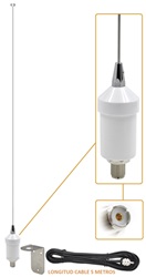 Cable: 5m RG-58 con conectores PL-259 (se puede añadir un cable más largo)-