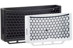 Base de malla transpirable, orificios para tornillos y sistema de fijación con velcro.