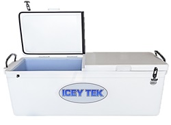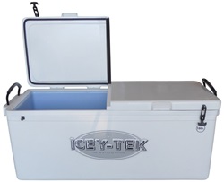 Cubierta externa 100 % polietileno de grado A y revestimiento interior apto para uso alimentario. Son resistente a impactos, olores y manchas. Aislante de poliuretano inyectado a presión en todas las cavidades laterales y de la tapa para una gran retención del frío/hielo.