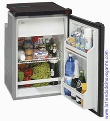 El CRUISE 130 es un frigorífico de 130 litros con congelador, dos estantes ajustables recubiertos de vinilo, una estantería interior de vidrio y un cajón para verduras. La puerta tiene tres estantes. Cuenta con termostato regulable, luz interior y una fuente de alimentación refrigerante integrada en la parte superior del frigorífico. La estructura de montaje está disponible como opción.