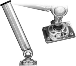 Cañero de latón cromado graduable y fácil de montar y desmontar, el cañero "click" de 360 grados es un accesorio utilizado en la pesca deportiva para sujetar y girar las cañas de pescar de manera conveniente. Este cañero permite un movimiento de rotación completo de 360 grados, brindando mayor flexibilidad y comodidad al pescar.